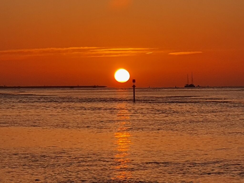 Partis à 11 heures ce matin, nous voilà de retour à 18h30. On avale vite notre repas à bord car le ciel est tellement clair, que ce soir le spectacle du coucher de soleil sera flamboyant. A 22 heures, nous sommes sur les gradins pour y assister.