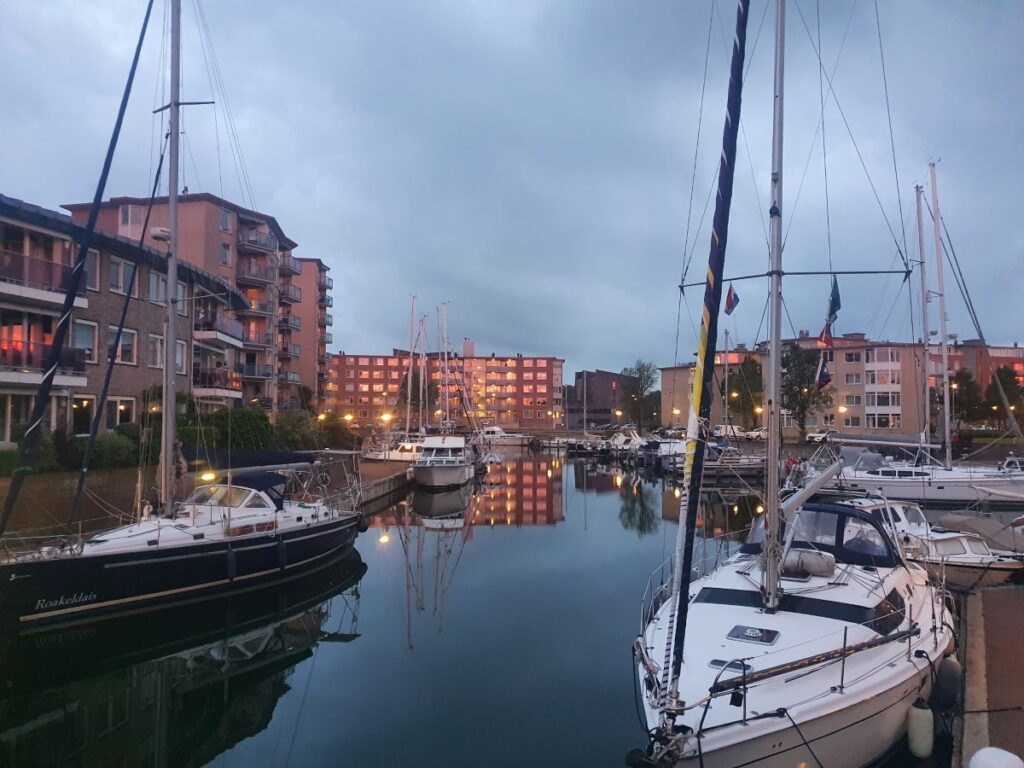 J’ai bien essayé, comme d’habitude, d’appeler le maître du port pour savoir d’avance à quel endroit nous pourrions nous mettre. Mais là, pas de chance: je tombe sur un répondeur en néerlandais où je n’ai même réussi à comprendre les numéros. Ne parlons du texte qui suivait. Depuis, j’ai fait quelques progrès (sur les numéros seulement). La communication s’est arrêtée là.